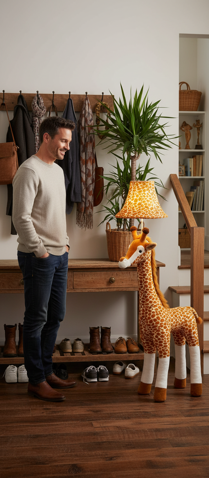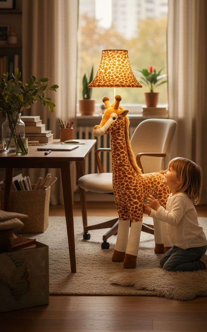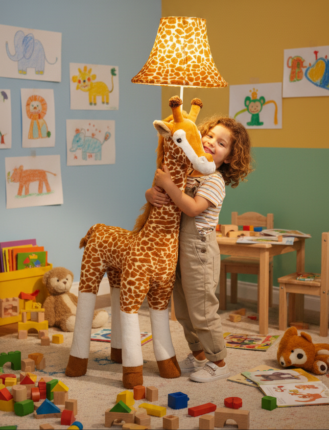 Raffi bringt mit ihrer typischen Giraffen-Silhouette etwas Leichtes in den Raum – hoch, freundlich und sofort wiedererkennbar.
